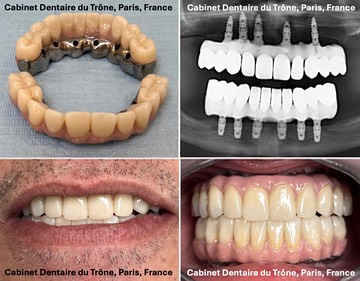 1/ Réhabilitations complètes implanto-portées fixes. La réhabilitation complète d’une bouche avec des implants et une prothèse fixe est un traitement délicat, impliquant des coûts très importants pour les patients, des poses d’implants planifiées et très précises, et des étapes de prothèses complexes afin de réaliser des restaurations esthétiques, fonctionnelles et pérennes. La moindre erreur sur ce type de traitements extrêmement coûteux peut être lourde de conséquences à court, moyen ou long terme. Pour cette raison, il est recommandé de ne faire appel qu’à des praticiens expérimentés utilisant des implants, matériaux et prothèses de qualité.